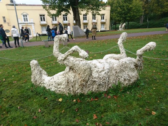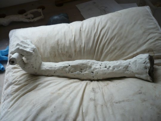 Egentlig skulle skulpturen bare smides væk ved udstillingens slutning, men jeg reddede den. Skar den i stykker og genetablerede den hjemme hos mig selv. Så kan jeg også undersøg hvor holdbart materialet egentlig er.
